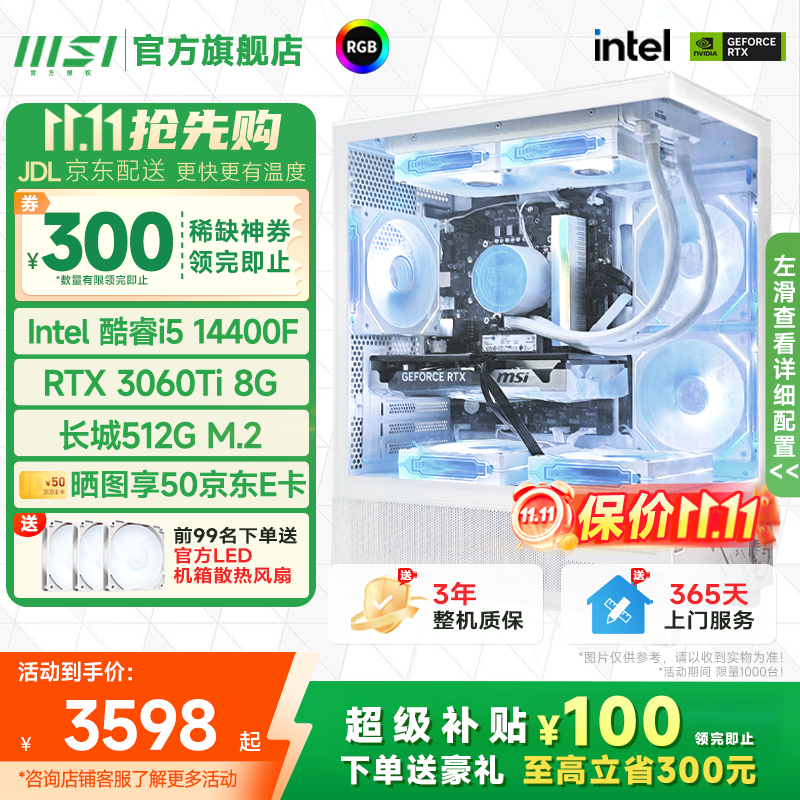 微星 宙斯盾S 15代Ultra7 265K/230F/i5 14400F台式组装电脑主机RTX5060Ti三角洲游戏高端设计整机 i5 14400F+RTX3060Ti标准版PRO 单主机