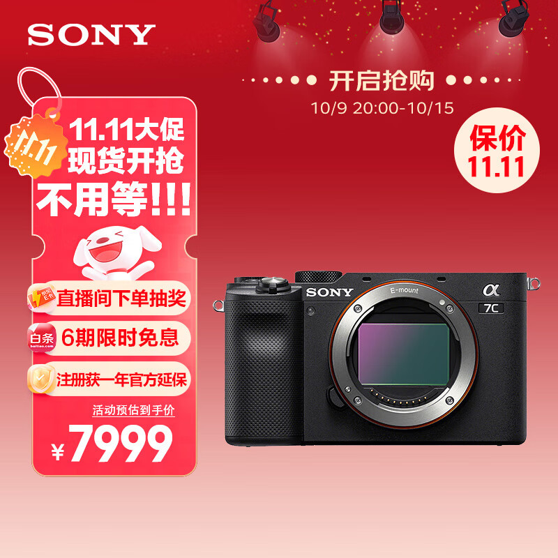 索尼(SONY)【政府补贴】Alpha 7C 全画幅微单数码相机 轻便小巧 实时眼部对焦 黑色(A7c/a7c/a7c)
