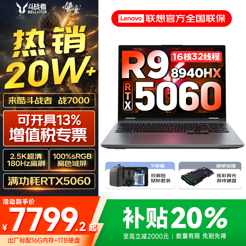 联想拯救者Y9000P 2025等20%补贴 电竞游戏笔记本电脑 满血RTX5060独显可选 大学生办公剪辑设计全能本 战7000|满血5060 R9-8940HX 16G内存 1TB固态|升级【官方正品 支持验证】