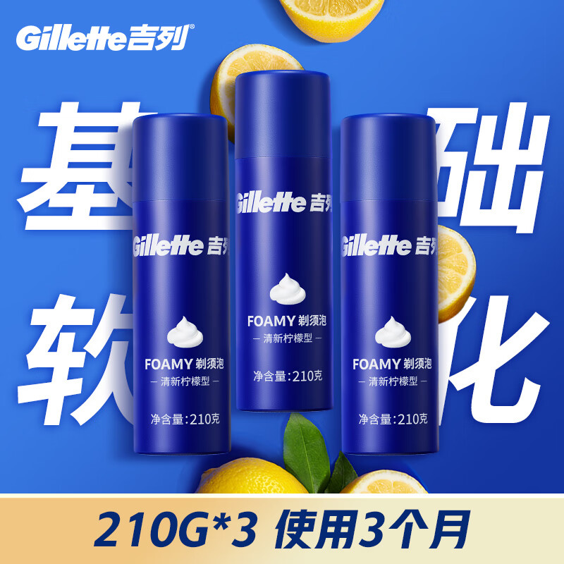 吉列清新柠檬型 剃须泡沫 剃须膏剃须啫喱 非刀头 210g*3 非吉利