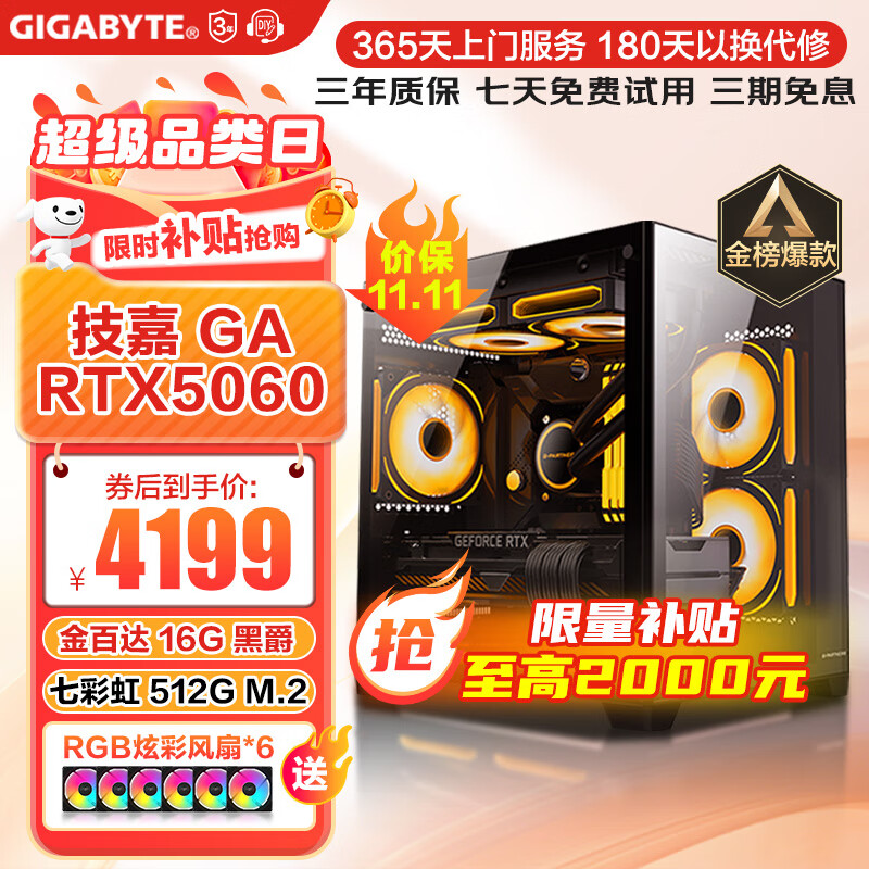 技嘉 i5 12400F升12490F/RTX3050/A380 6G独显电竞游戏直播吃鸡台式组装电脑主机整机DIY